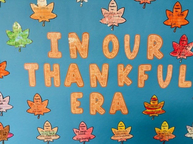 Now, when you walk by our In Our Thankful Era board, you’ll see a colorful reminder that thankfulness is contagious. Each leaf may represent an individual thought, but together, they create a beautiful display of connection, kindness, and appreciation.